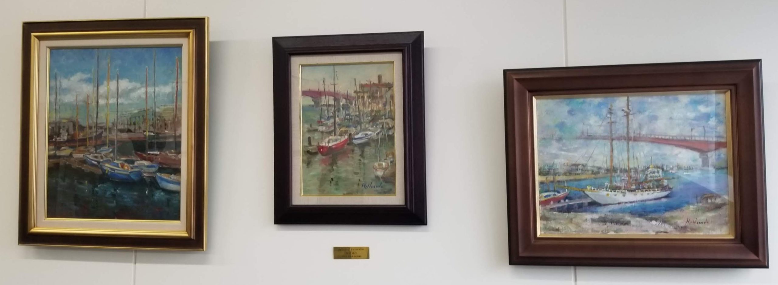 それに加えて3枚の連作「西宮ヨットハーバー」が7階の会議室にあり、これは中に入らなければ見ていただけないけれど、こんなふうになっている。